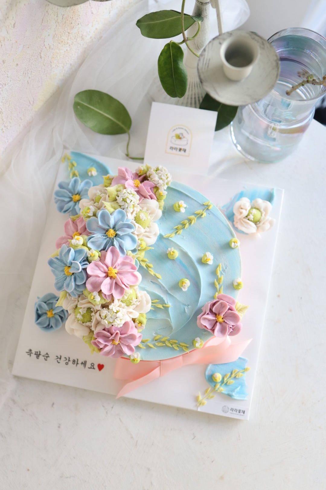 - 윗면 앙금크림 아이싱, 옆면 투명 띠지 후 리본(랜덤), 추가금액 없이 투명박스 포장, 케이크칼(성냥), 숫자초-2개