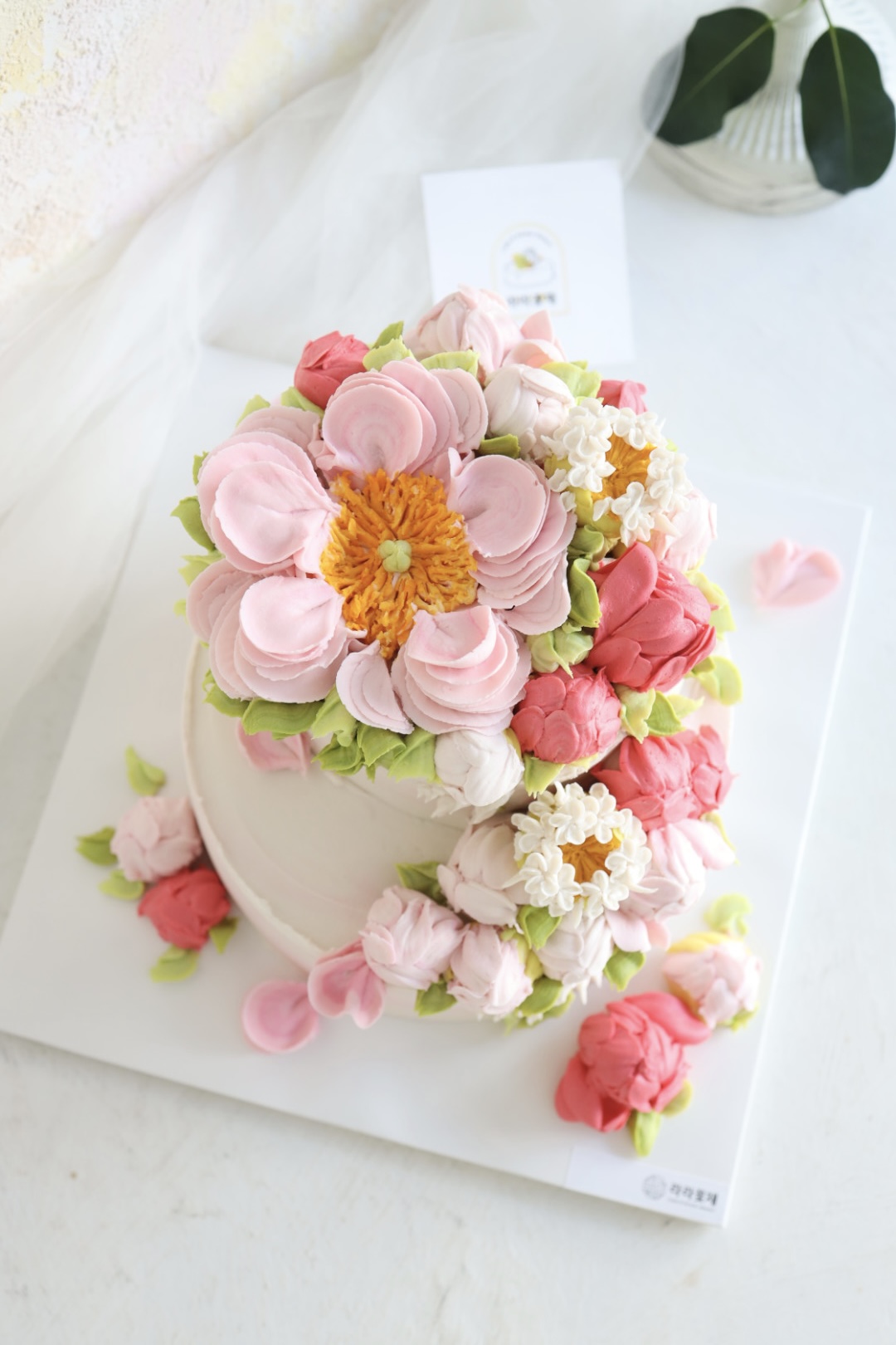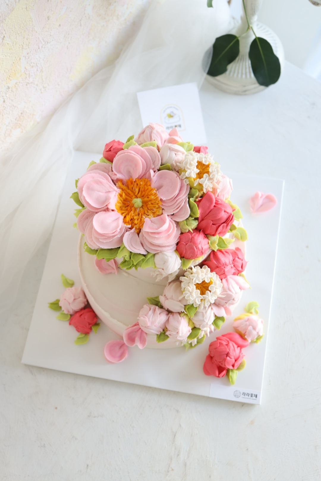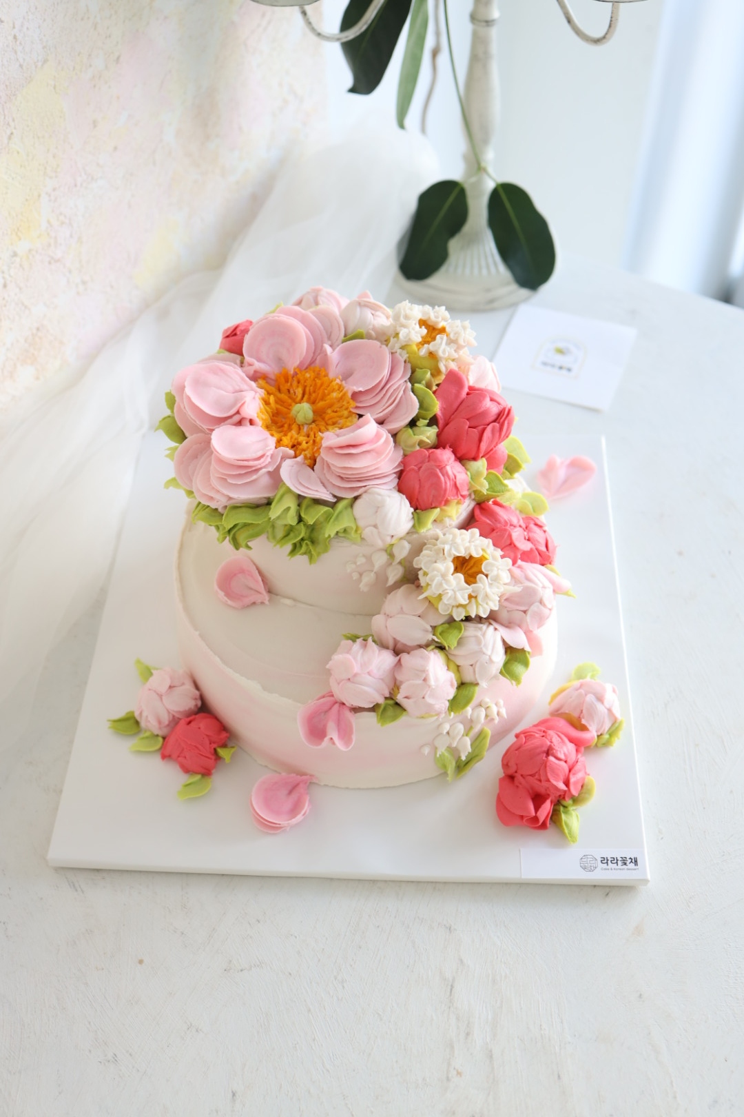 3호+1호 2단 핀작약 앙금플라워케이크