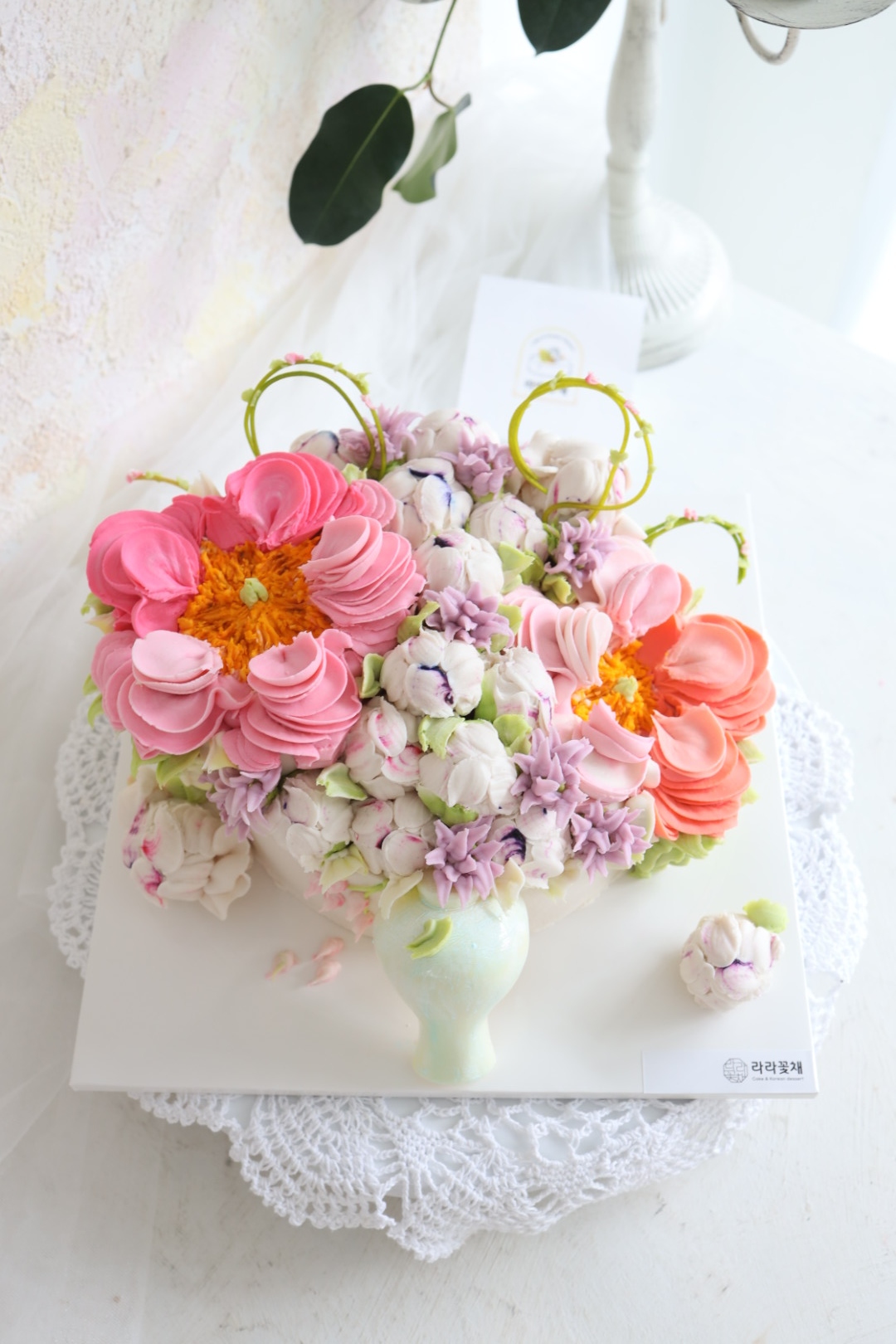 2호 핀작약 청자 항아리 앙금플라워케이크