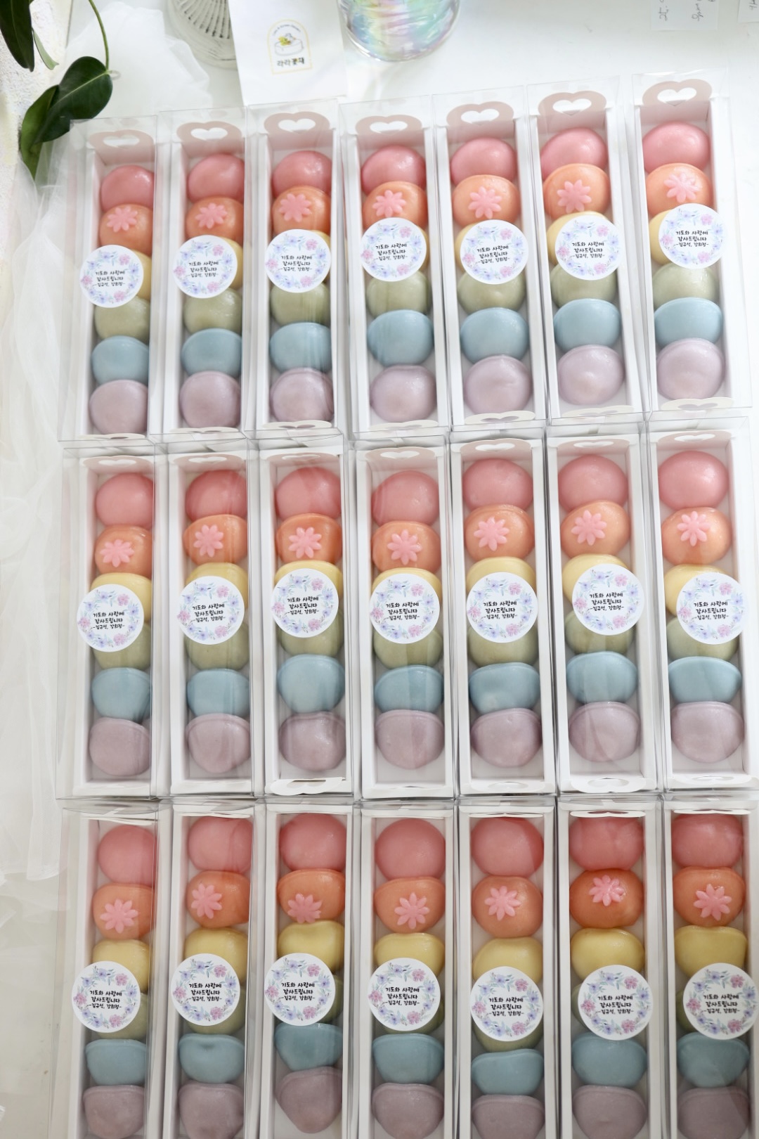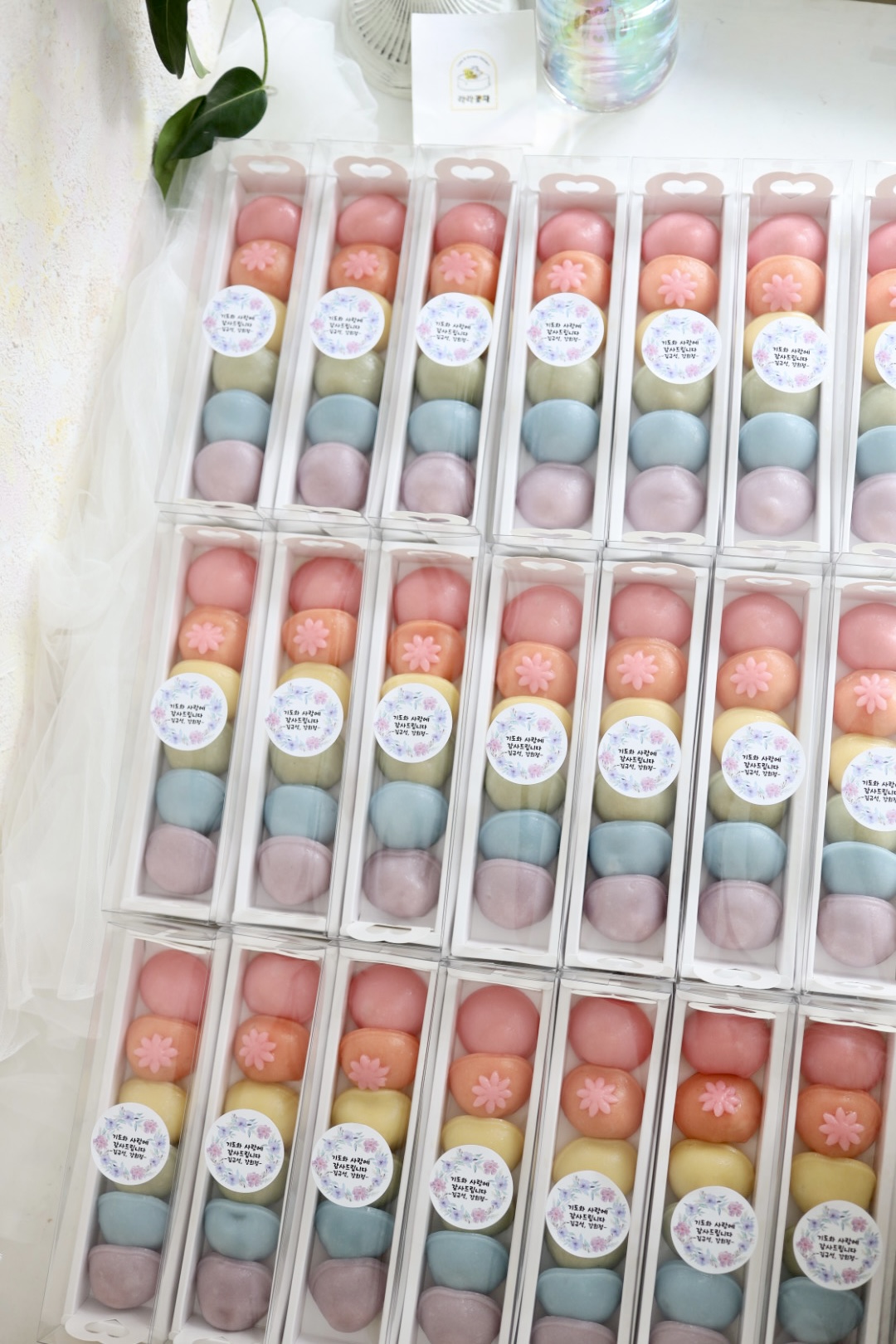 떡디저트 > 떡디저트 무지개바람떡(6개) 1상자 NEW BEST 제품종류 바람떡 판매가 7,000원 보관방법 드시기 전까지 상온보관 소비기한 픽업일 당일 섭취 알레르기 주의 바람떡소(흰강낭콩, 아황산류) 포장단위 (6개) 1상자 기타 - 무지개바람떡(답례떡) 최소주문수량 10상자 입니다. - 바람떡 색감과 데코는 사진 샘플과 조금씩 다를 수 있습니다. - 간단한 문구 스티커로 출력해서 부착 가능합니다.(업체 제작 스티커는 25만원 이상 구매시 서비스로 제공됩니다.) 카카오채널 문의하기 카카오채널 문의하기 다음글 > 장미 컵설기 1개 < 이전글 무지개 조각설기 1상자 목록 ▲ ▼