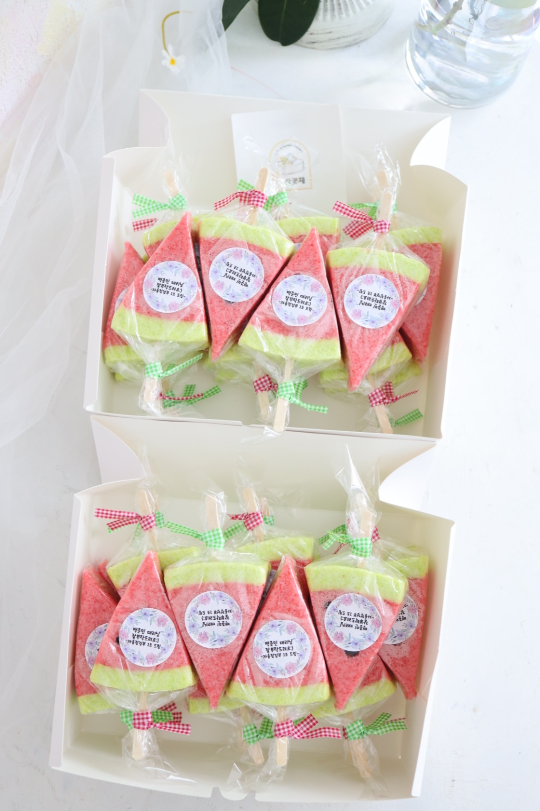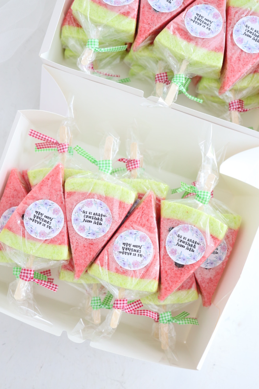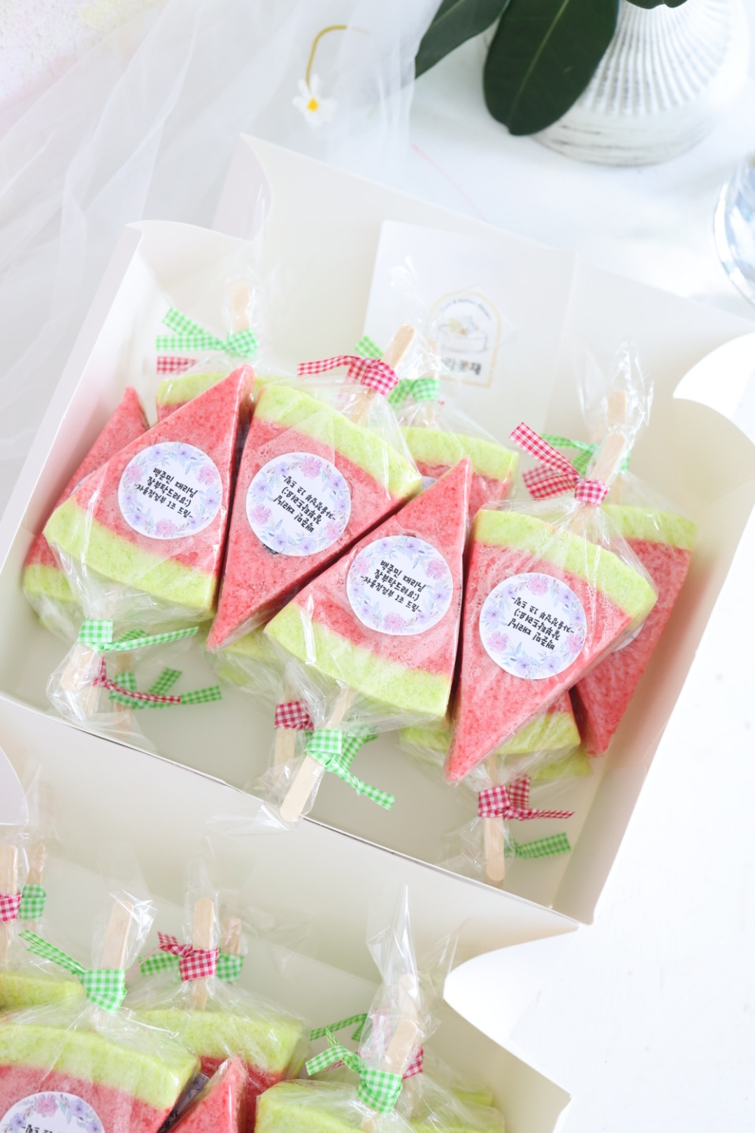 떡디저트 > 떡디저트 수박떡바 32개 NEW BEST 제품종류 퓨전답례떡 판매가 108,000원 보관방법 드시기 전까지 상온보관 소비기한 픽업일 당일 섭취 알레르기 주의 수박떡바-초콜렛 포장단위 수박떡바 32개 기타 - 수박떡바 최소 주문수량 16개(2판)이고, 8개 단위로 주문 가능합니다. - 2판 이상 주문시 간단한 문구 스티커로 출력해서 부착 가능합니다. 카카오채널 문의하기 카카오채널 문의하기 다음글 > 바나나설기 21개 < 이전글 수박떡바 16개 목록 ▲ ▼