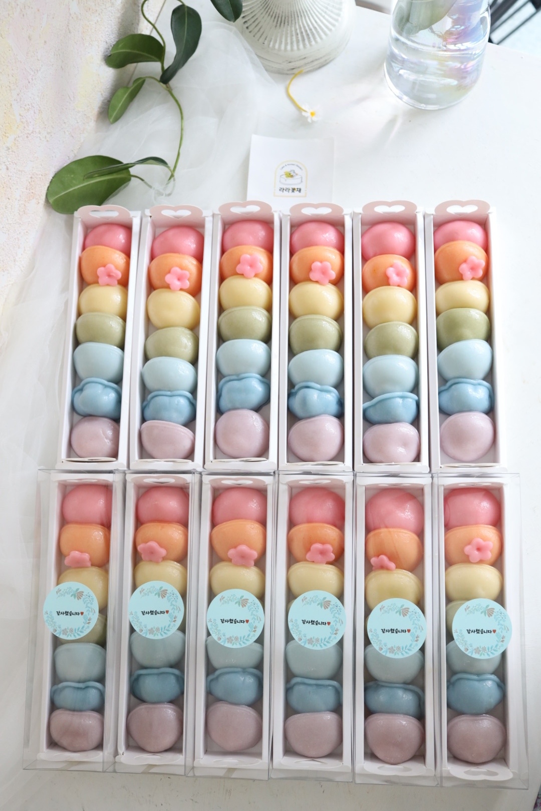 떡디저트 > 떡디저트 무지개바람떡(7개) 12상자 NEW BEST 제품종류 바람떡 판매가 96,000원 보관방법 드시기 전까지 상온보관 소비기한 픽업일 당일 섭취 알레르기 주의 바람떡소(흰강낭콩, 아황산류) 포장단위 (7개) 12상자 기타 - 무지개바람떡 7개(답례떡) 1상자 > 8,000원 - 무지개바람떡(답례떡) 최소주문수량 10상자 입니다. - 바람떡 색감과 데코는 사진 샘플과 조금씩 다를 수 있습니다. - 간단한 문구 스티커로 출력해서 부착 가능합니다.(업체 제작 스티커는 25만원 이상 구매시 서비스로 제공됩니다.) 카카오채널 문의하기 카카오채널 문의하기 다음글 > 무지개바람떡(6개) 30상자 < 이전글 무지개바람떡(7개) 40상자 목록 ▲ ▼
