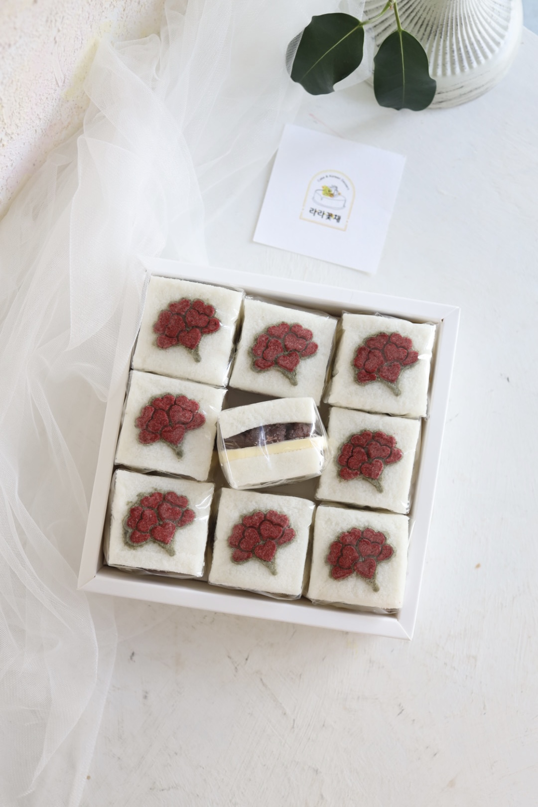 떡디저트 > 떡디저트 카네이션 앙버떡 1상자 NEW BEST 제품종류 조각설기 판매가 38,000원 보관방법 드시기 전까지 상온보관 소비기한 픽업일 당일 섭취 알레르기 주의 패턴글씨(홍국쌀가루, 딸기가루, 쑥가루), 유제품(버터), 팥앙금 포장단위 (9조각) 1상자 기타 - 카네이션 앙버떡은 최소주문수량 2상자 입니다. 카카오채널 문의하기 카카오채널 문의하기 다음글 > 광주 추석 송편 오색도장밤송편 1상자 < 이전글 꽃송편 1상자 목록 ▲ ▼