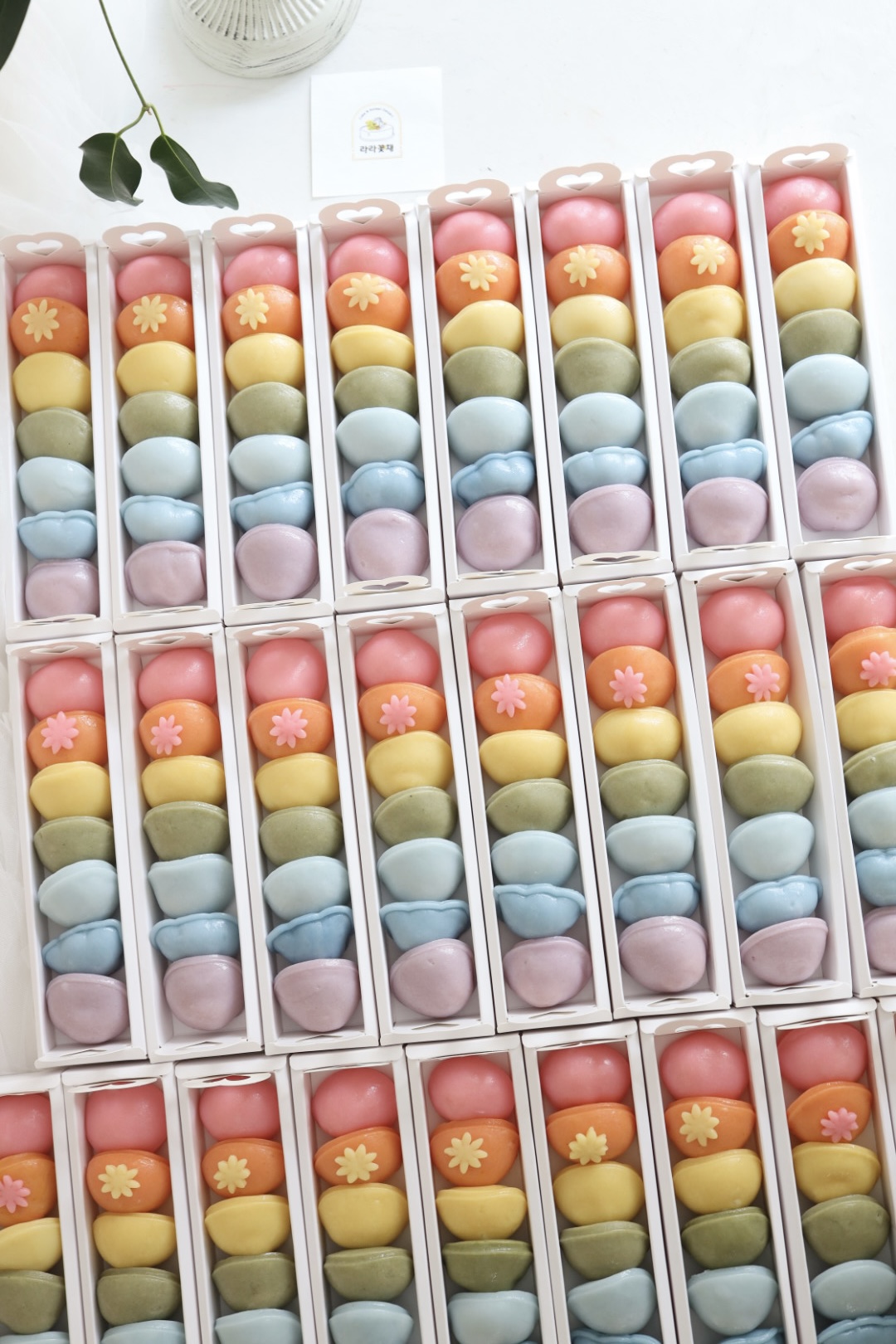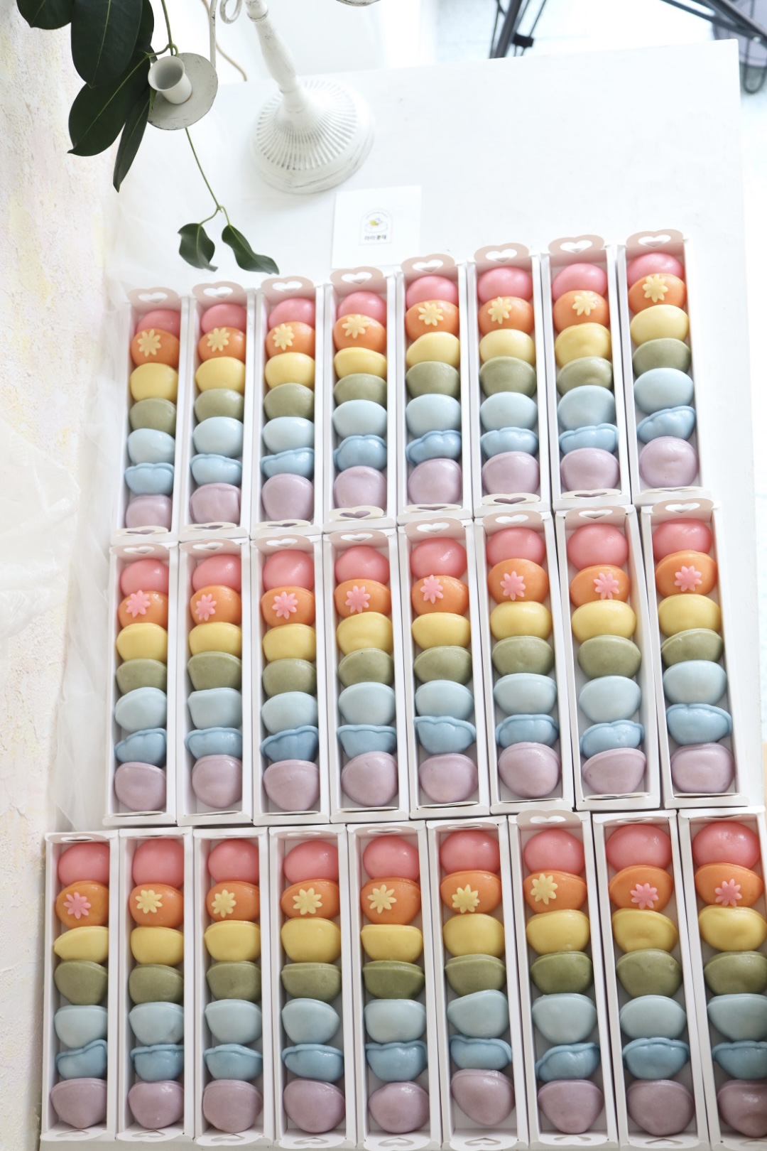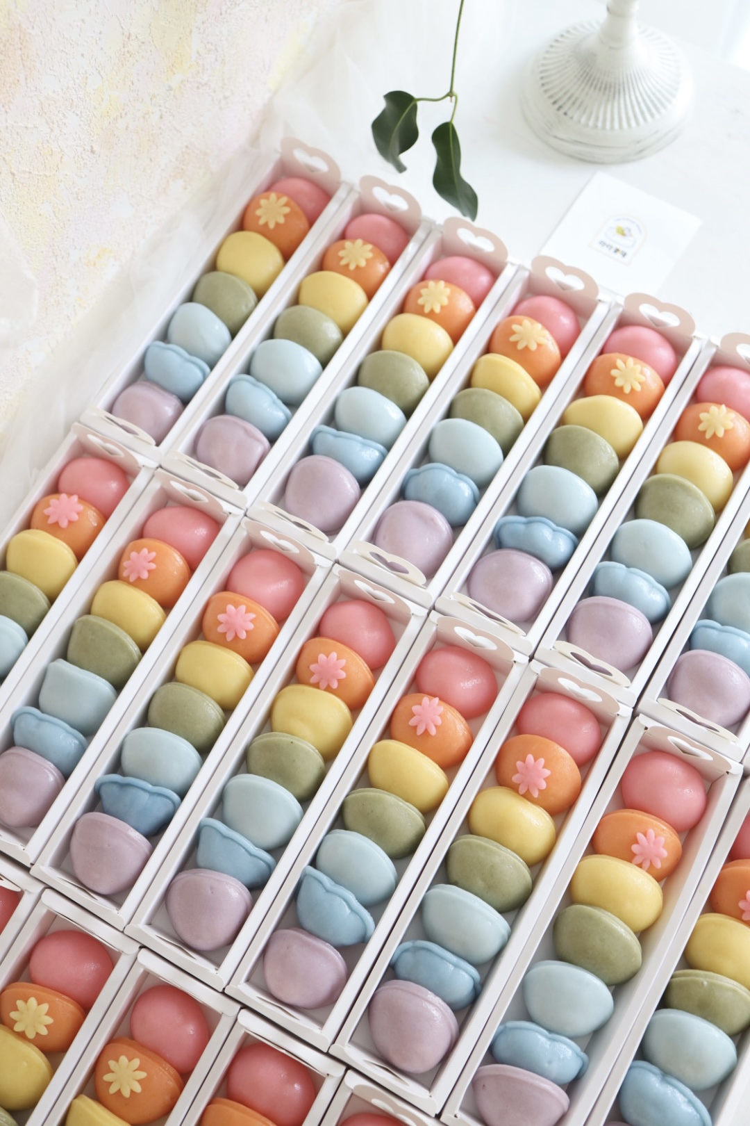 떡디저트 > 떡디저트 무지개바람떡(7개) 45상자 NEW BEST 제품종류 바람떡 판매가 360,000원 보관방법 드시기 전까지 상온보관 소비기한 픽업일 당일 섭취 알레르기 주의 바람떡소(흰강낭콩, 아황산류) 포장단위 (7개) 45상자 기타 - 무지개바람떡 7개(답례떡) 1상자 > 8,000원 - 무지개바람떡(답례떡) 최소주문수량 10상자 입니다. - 바람떡 색감과 데코는 사진 샘플과 조금씩 다를 수 있습니다. - 간단한 문구 스티커로 출력해서 부착 가능합니다.(업체 제작 스티커는 25만원 이상 구매시 서비스로 제공됩니다.) 카카오채널 문의하기 카카오채널 문의하기 < 이전글 오색도장송편 + 단호박인절미 + 찹쌀약과 3단 1세트 목록 ▲ ▼