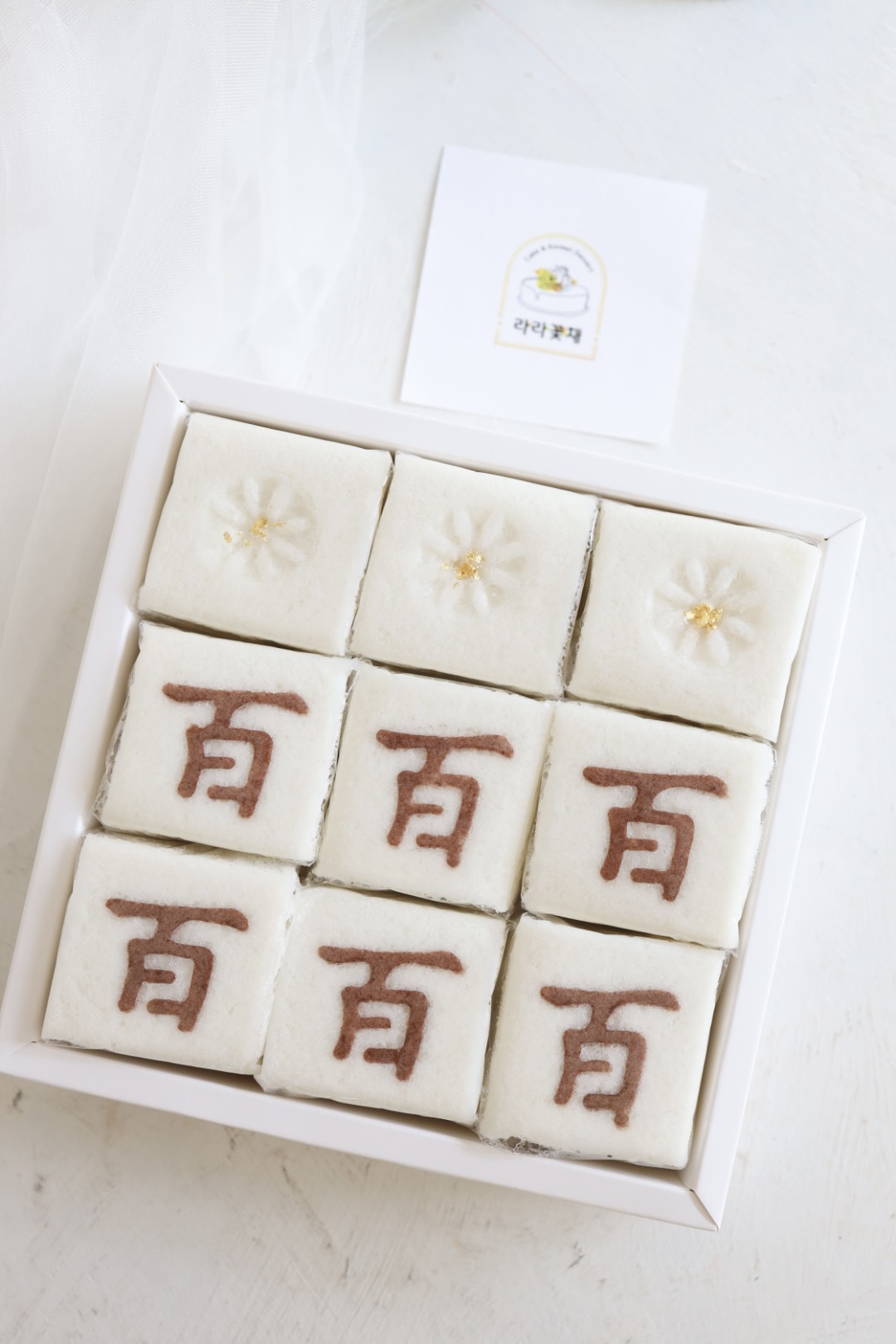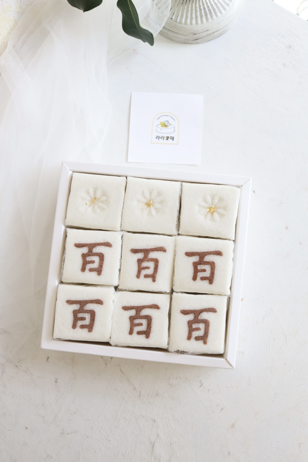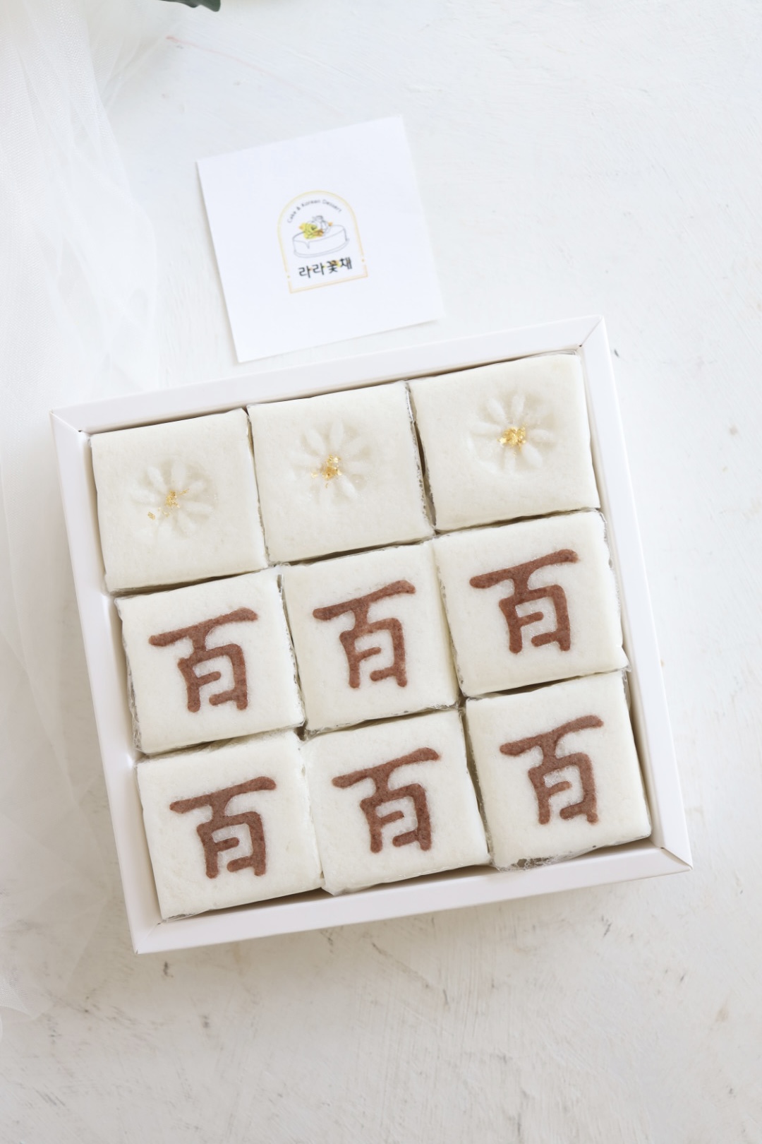 떡디저트 > 떡디저트 백일 조각설기 1상자 NEW BEST 제품종류 조각설기 판매가 31,000원 보관방법 드시기 전까지 상온보관 소비기한 픽업일 당일 섭취 알레르기 주의 백설기-패턴글씨(코코아가루) 포장단위 백설기(9조각) 1상자 기타 - 기본 백설기로 제작되고, 꿀띠 설기로 변경시(흑설탕+시나몬가루+호두분태) > +2천원 추가금액 있습니다. - 조각설기는 9개(1상자) 단위로 주문 가능합니다. - 백설기 패턴 글씨 변경 가능하고, 패턴 제작이 필요할 경우 별도 추가금액 있습니다. 카카오채널 문의하기 카카오채널 문의하기 다음글 > 꽃송편 + 오색도장송편 + 찰수수팥떡 3단 1세트 < 이전글 바나나설기 28개+수박떡바 40개+오레오떡바 32개 목록 ▲ ▼