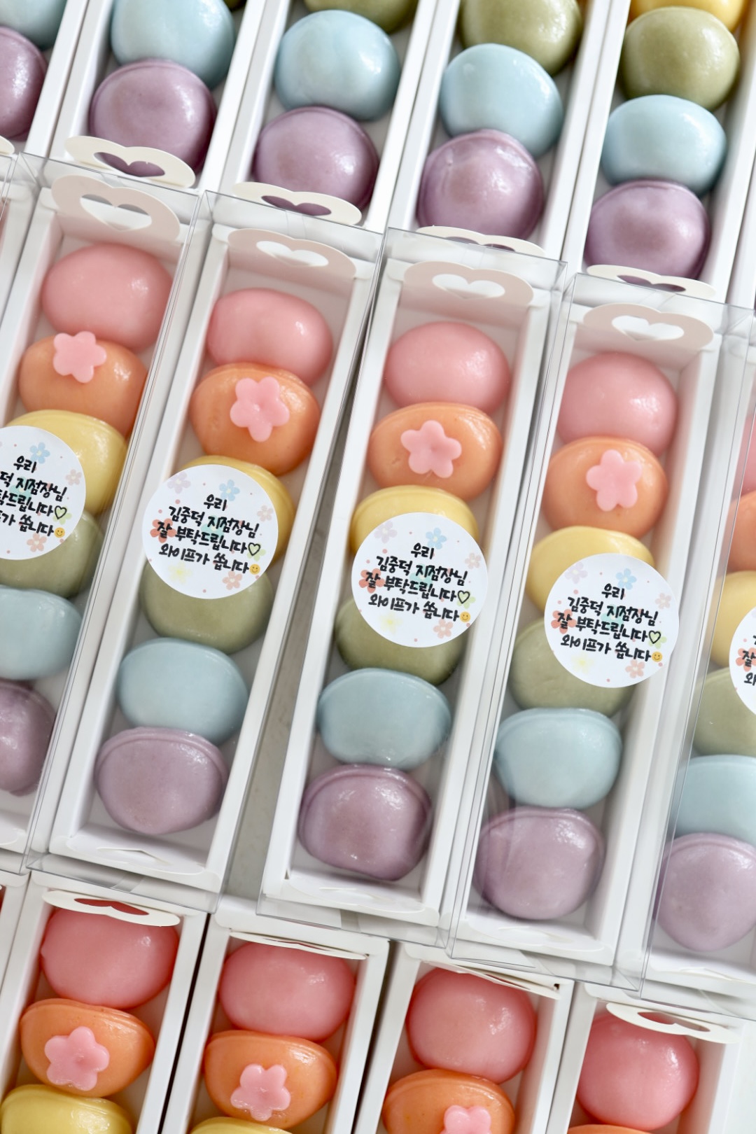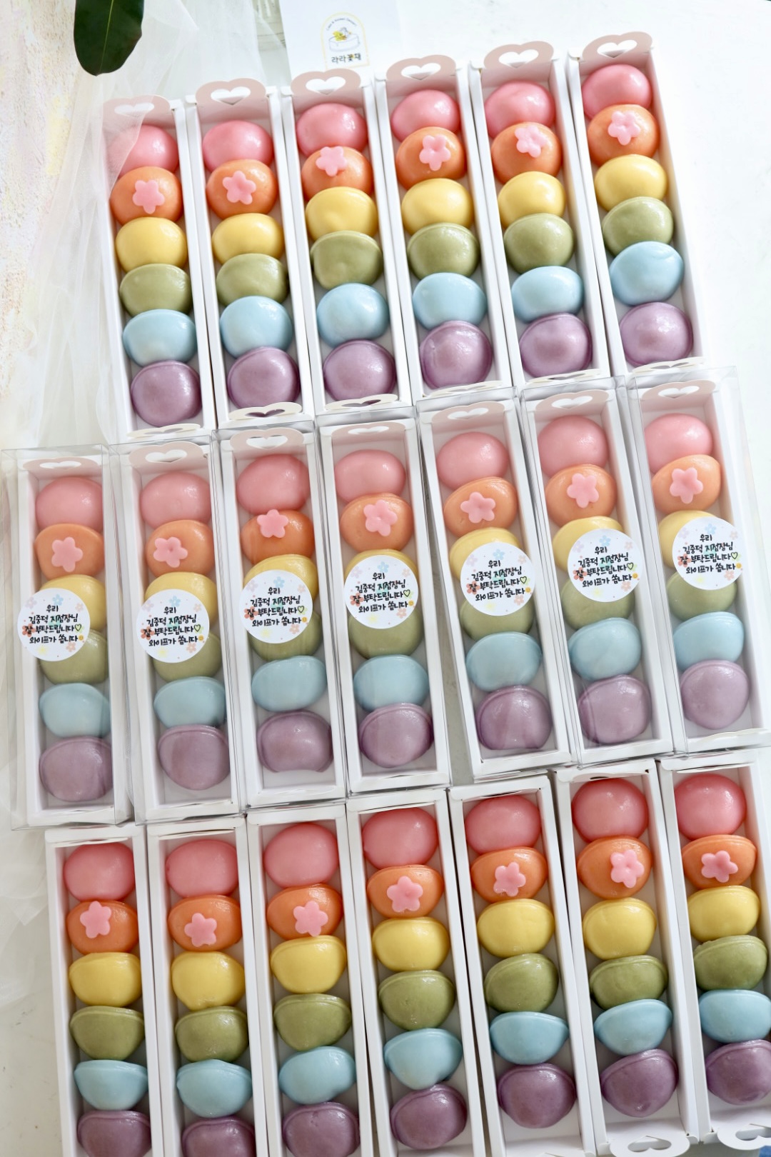 떡디저트 > 떡디저트 무지개바람떡(6개) 20상자 NEW BEST 제품종류 바람떡 판매가 160,000원 보관방법 드시기 전까지 상온보관 소비기한 픽업일 당일 섭취 알레르기 주의 바람떡소(흰강낭콩, 아황산류) 포장단위 (6개) 20상자 기타 - 무지개바람떡 6개(답례떡) 1상자 > 8,000원 - 무지개바람떡(답례떡) 최소주문수량 10상자 입니다. - 바람떡 색감과 데코는 사진 샘플과 조금씩 다를 수 있습니다. - 간단한 문구 스티커로 출력해서 부착 가능합니다.(업체 제작 스티커는 25만원 이상 구매시 서비스로 제공됩니다.) 카카오채널 문의하기 카카오채널 문의하기 다음글 > 수박떡바 16개 < 이전글 장미 컵설기 20개 목록 ▲ ▼