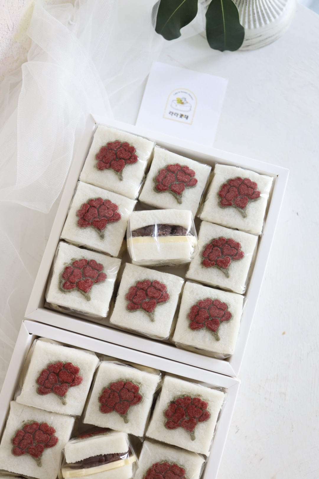 시즌제품 > 시즌제품 카네이션 앙버떡 2상자 NEW BEST 제품종류 어버이날/스승의날 판매가 76,000원 보관방법 상온보관 소비기한 픽업일 당일 섭취 알레르기 주의 패턴글씨(홍국쌀가루, 딸기가루, 쑥가루), 유제품(버터), 팥앙금 포장단위 (9조각) 2상자 기타 - 카네이션 앙버떡은 최소주문수량 2상자 입니다. - 띠지와 택은 매장 재고에 따라 다른 문구로 변경될 수 있습니다. *보자기포장은 선택사항으로 별도 추가금액 있습니다. - 크리스탈보자기 포장 + 쇼핑백 > 개당 +5천원 카카오채널 문의하기 카카오채널 문의하기 < 이전글 쌀오란다+호두정과+찹쌀약과 혼합세트 1상자(택배주문 가능) 목록 ▲ ▼
